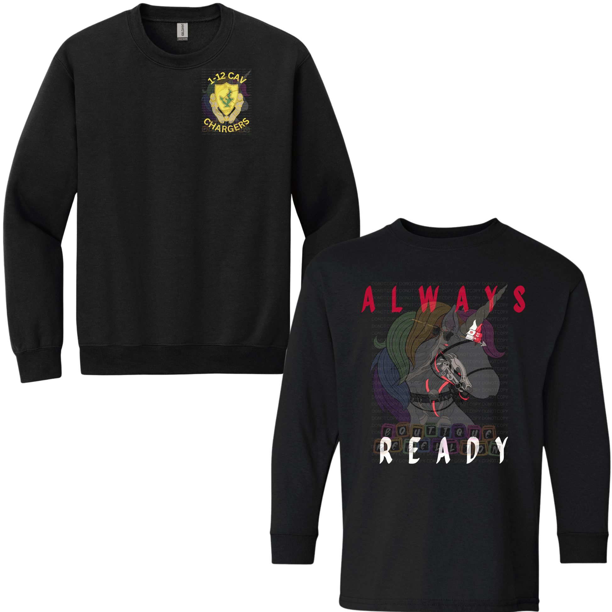 Youth 1-12 Cav Black Horse - B Company Crewneck Sweatshirt or Hoodie
