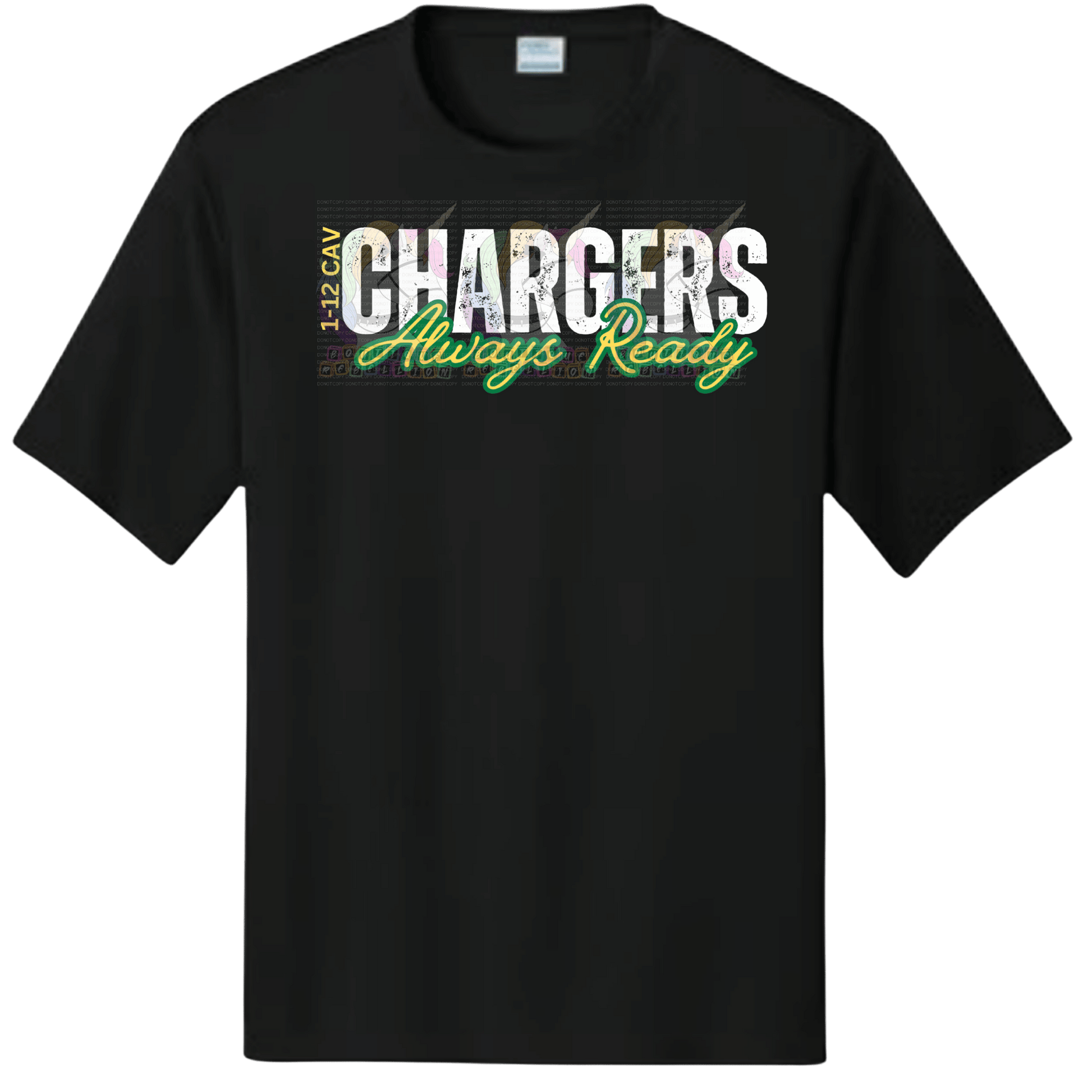Support your soldier with this 100% cotton ring spun cotton tee with chargers image.