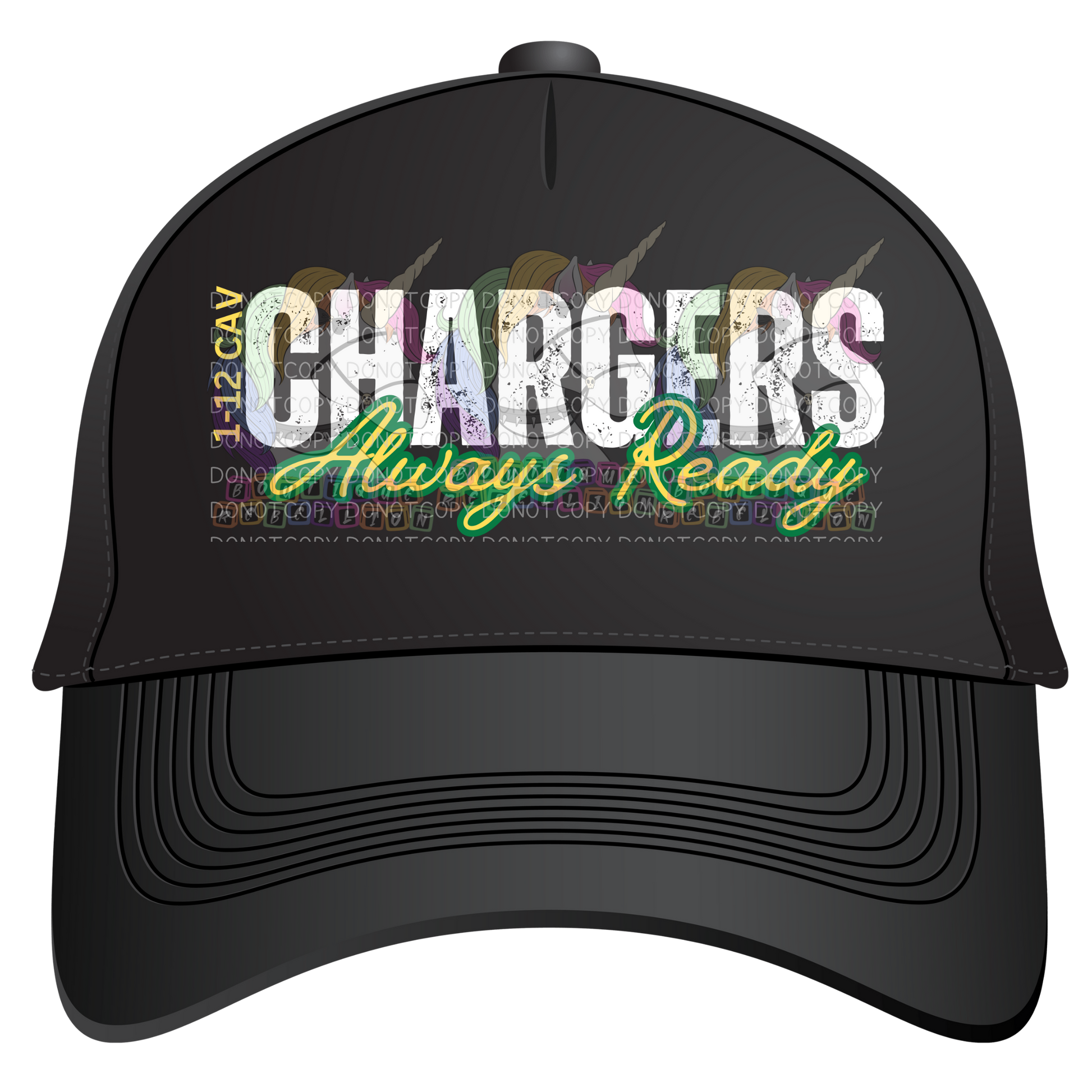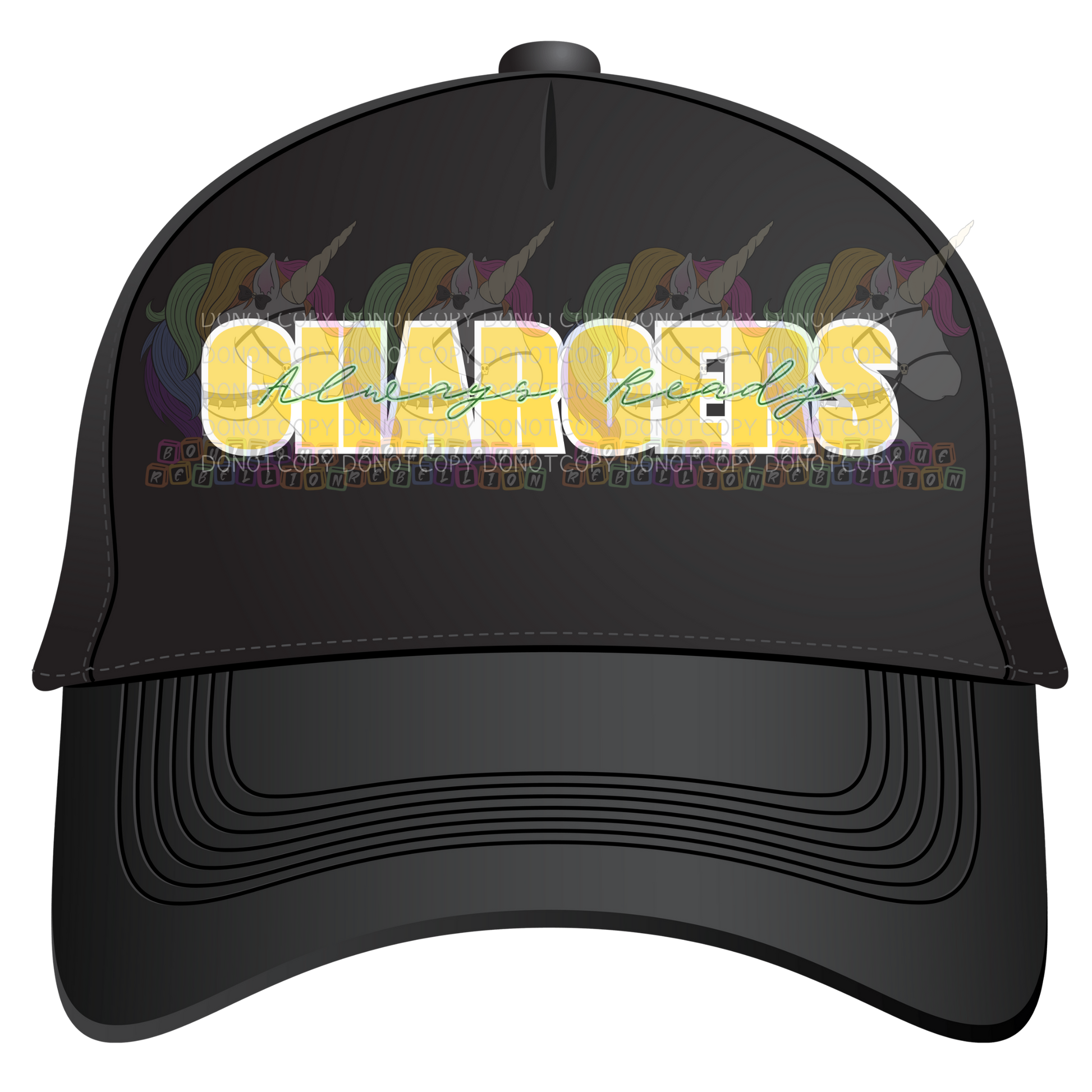 Show your support for your soldier with this snap back trucker hat! Mesh sides and foam front with direct to film chargers image.