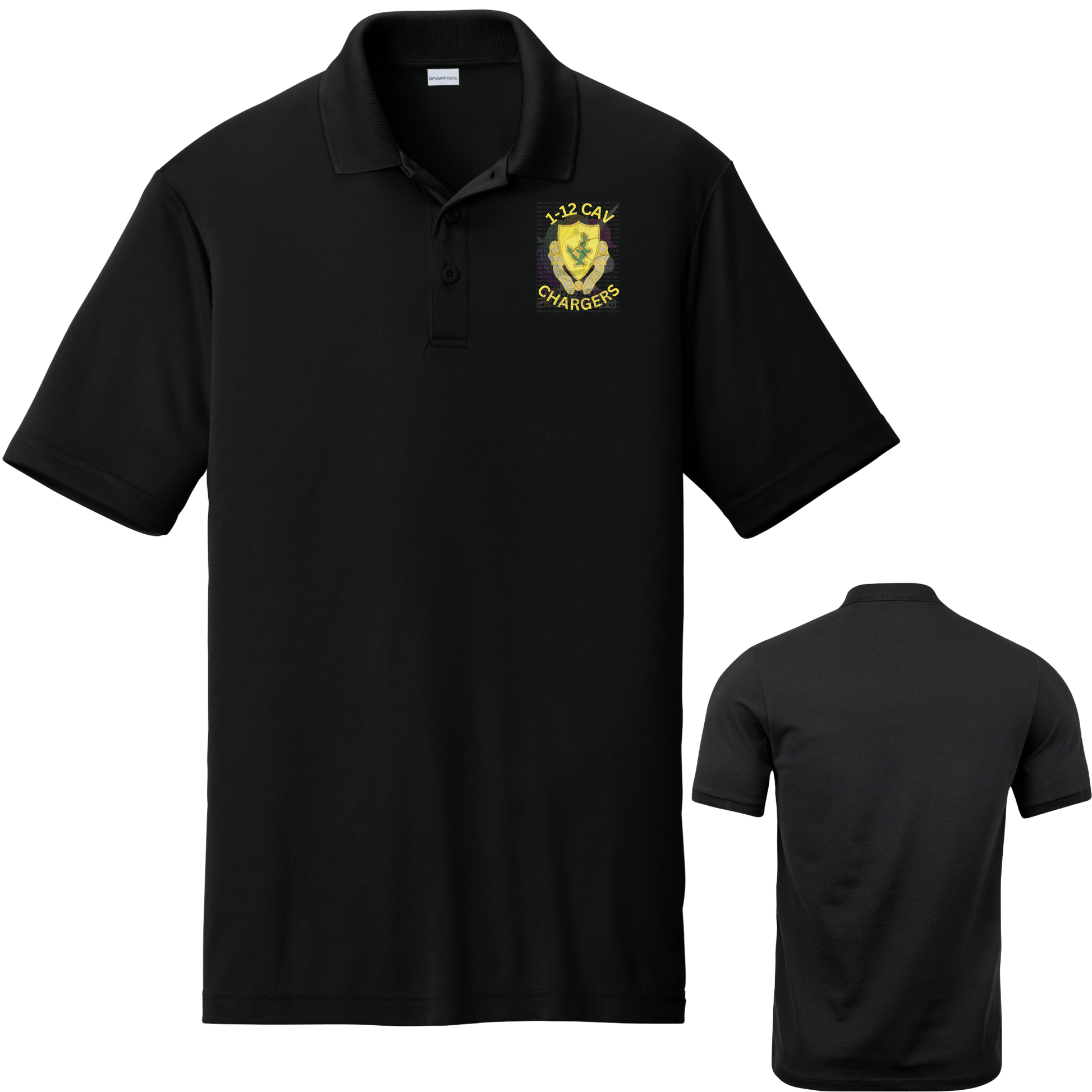 100% Polyester Moisture Wicking Black Polo Shirts with front left chest logo.