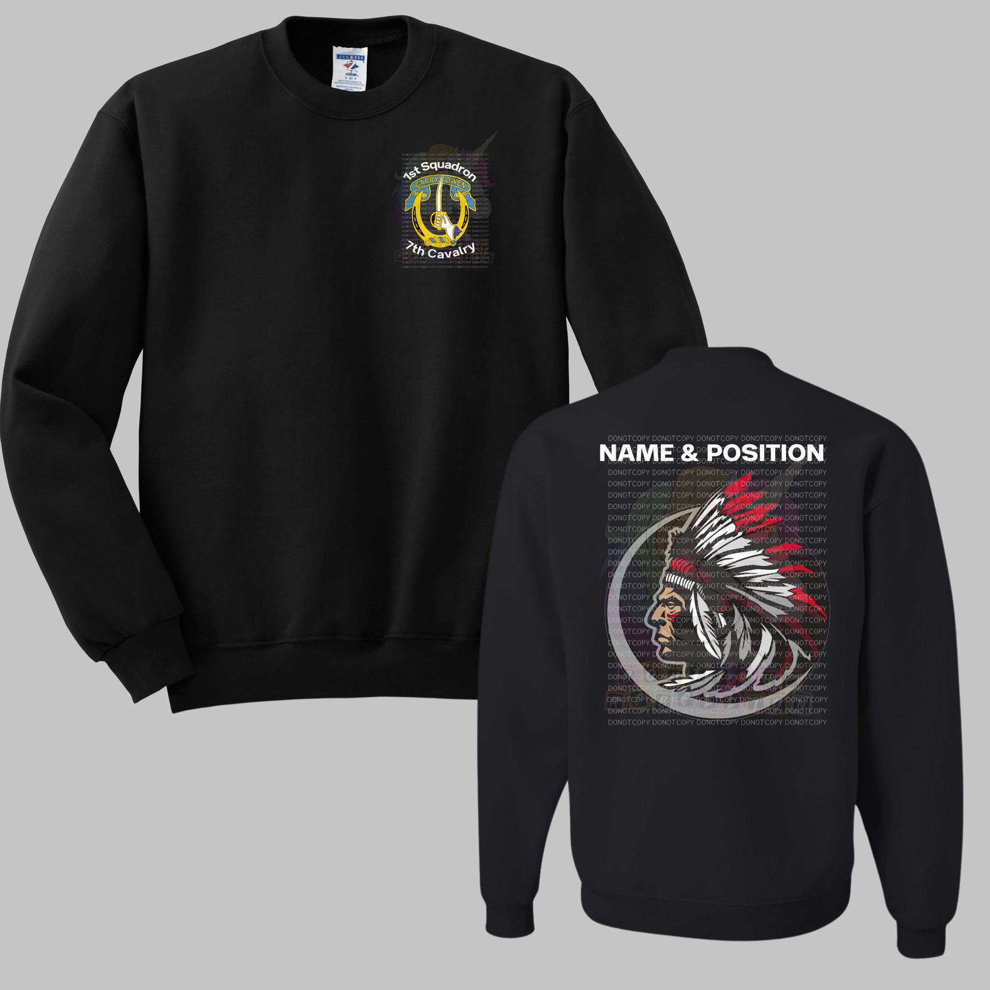 1-7 Cav Apache Black Crewneck Sweatshirt, Long Sleeve or Short Sleeve Shirt
