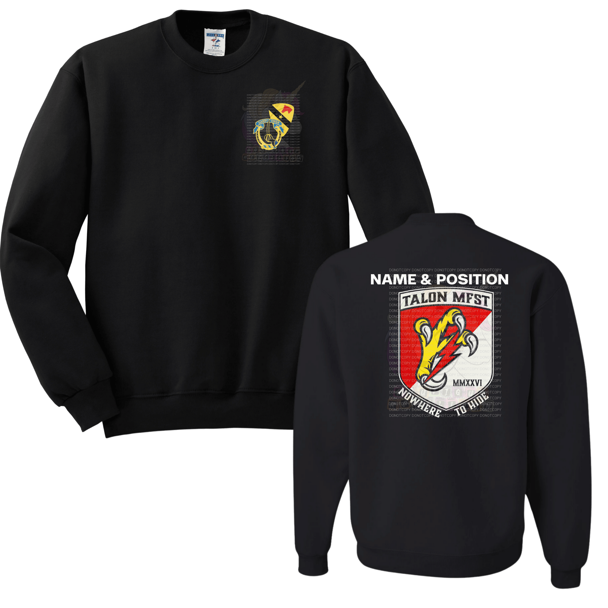 1-7 Cav Talon Troop Black Crewneck Sweatshirt, Long Sleeve or Short Sleeve Shirt