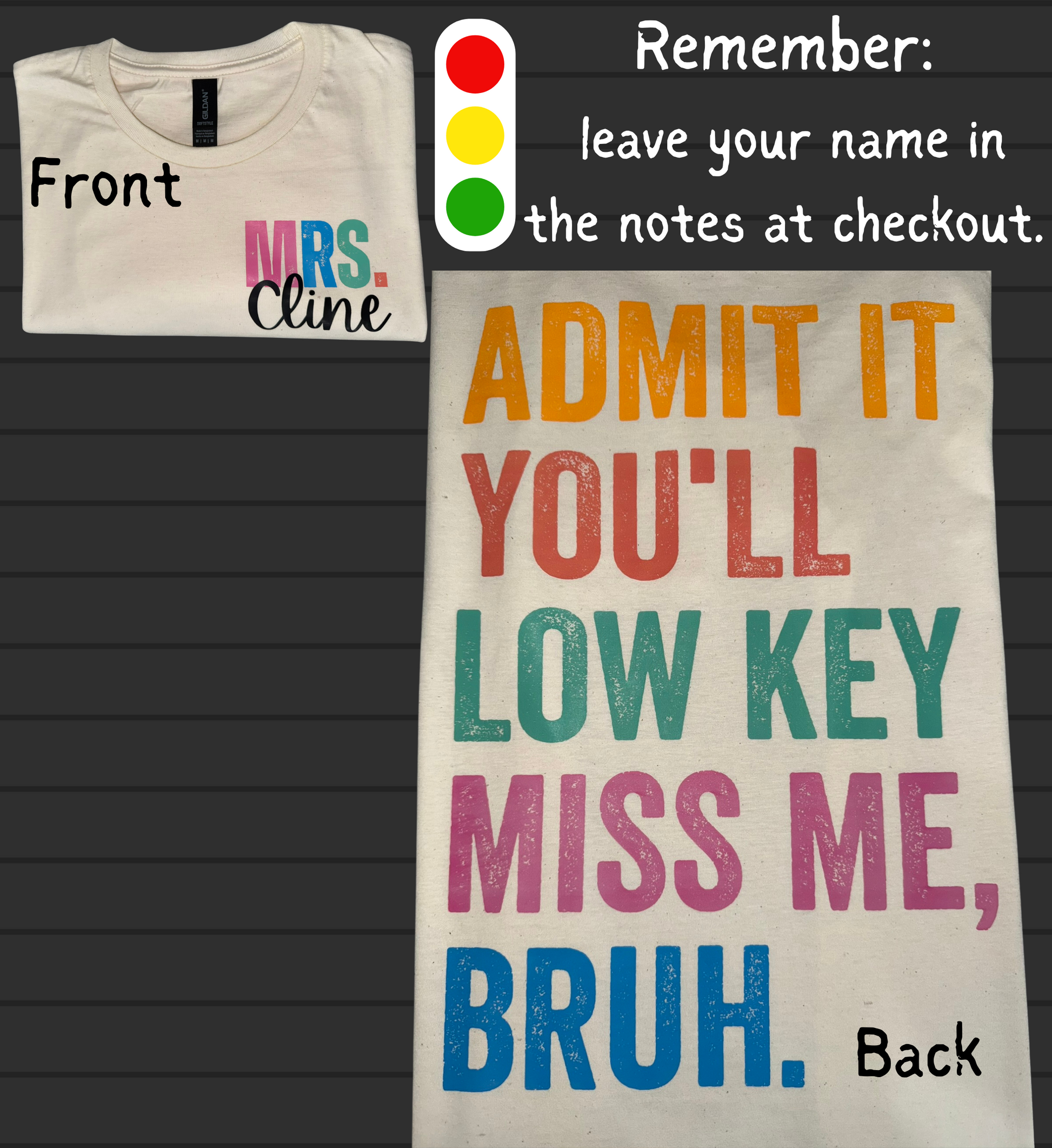 Remember to add your name to the NOTES section of the cart before you go to the final checkout
