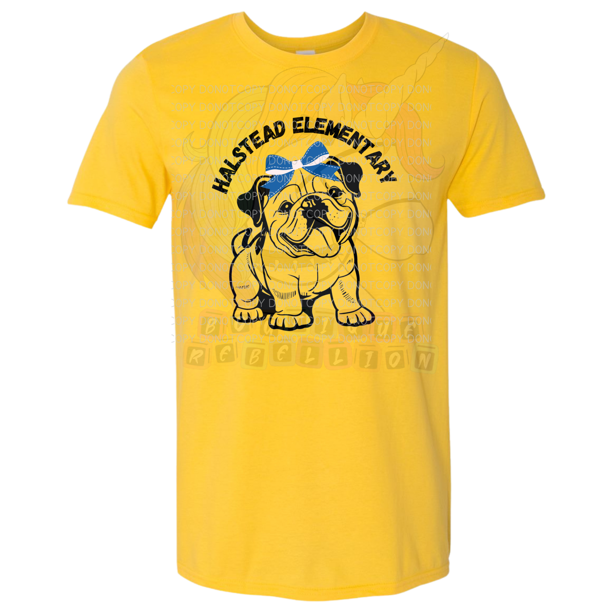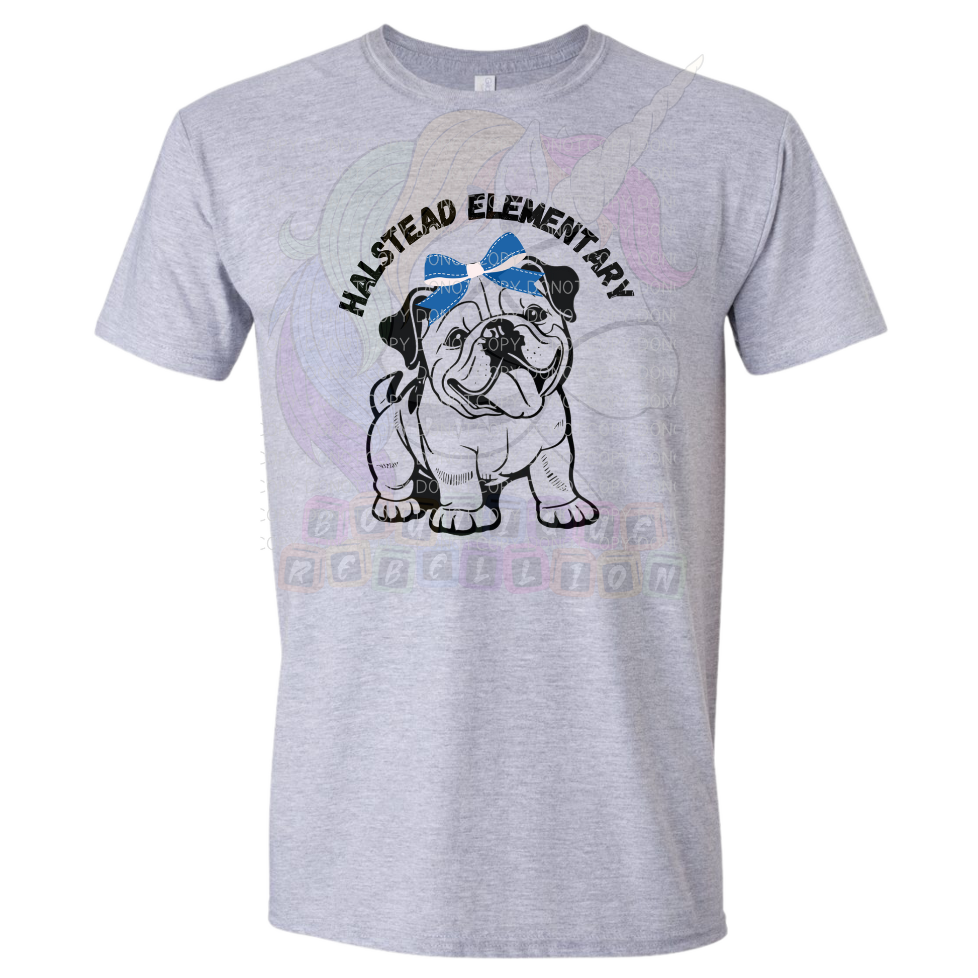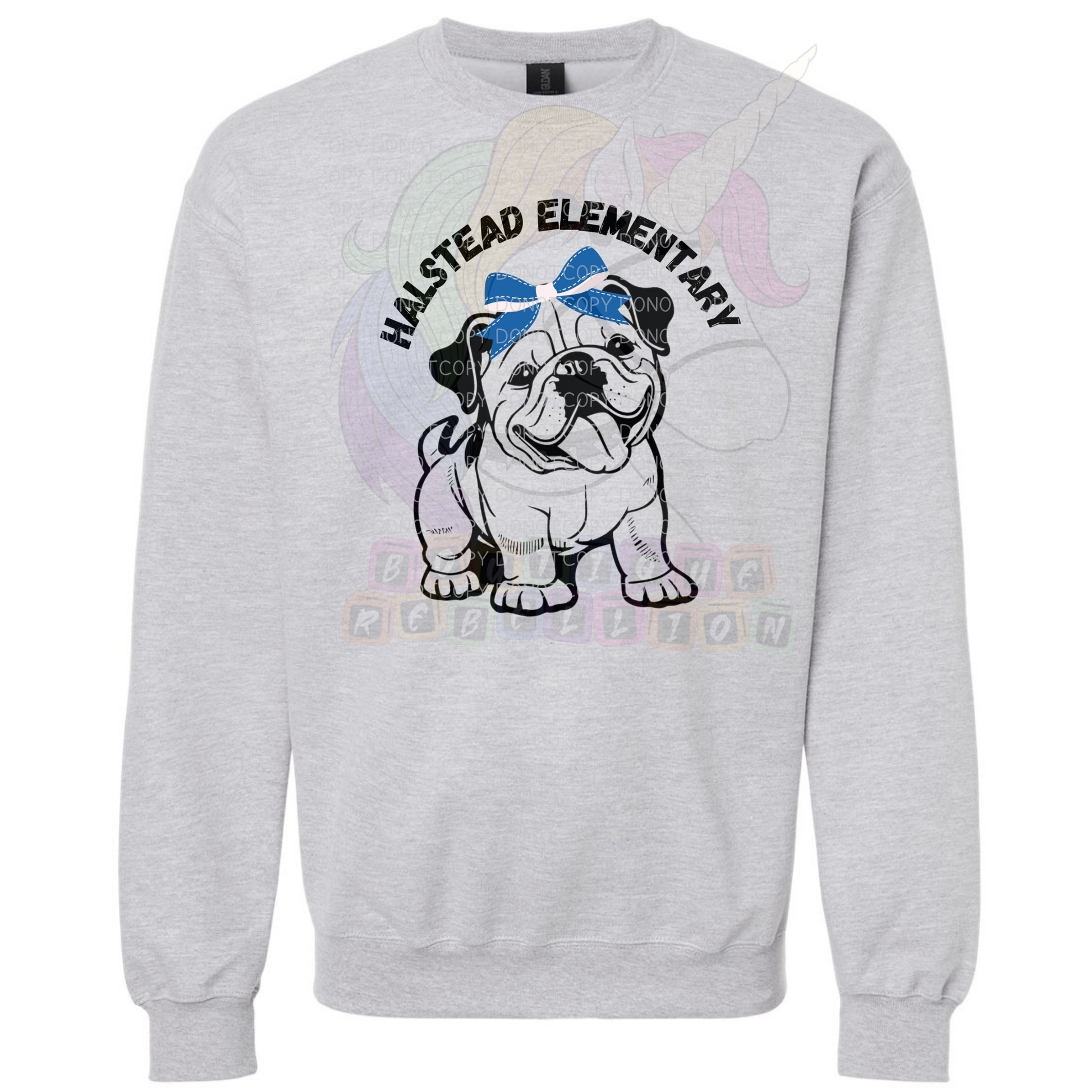 Hettie Halstead Elementary Bulldawg with Bow Crewneck Sweatshirt, Long Sleeve or Short Sleeve Youth Tee
