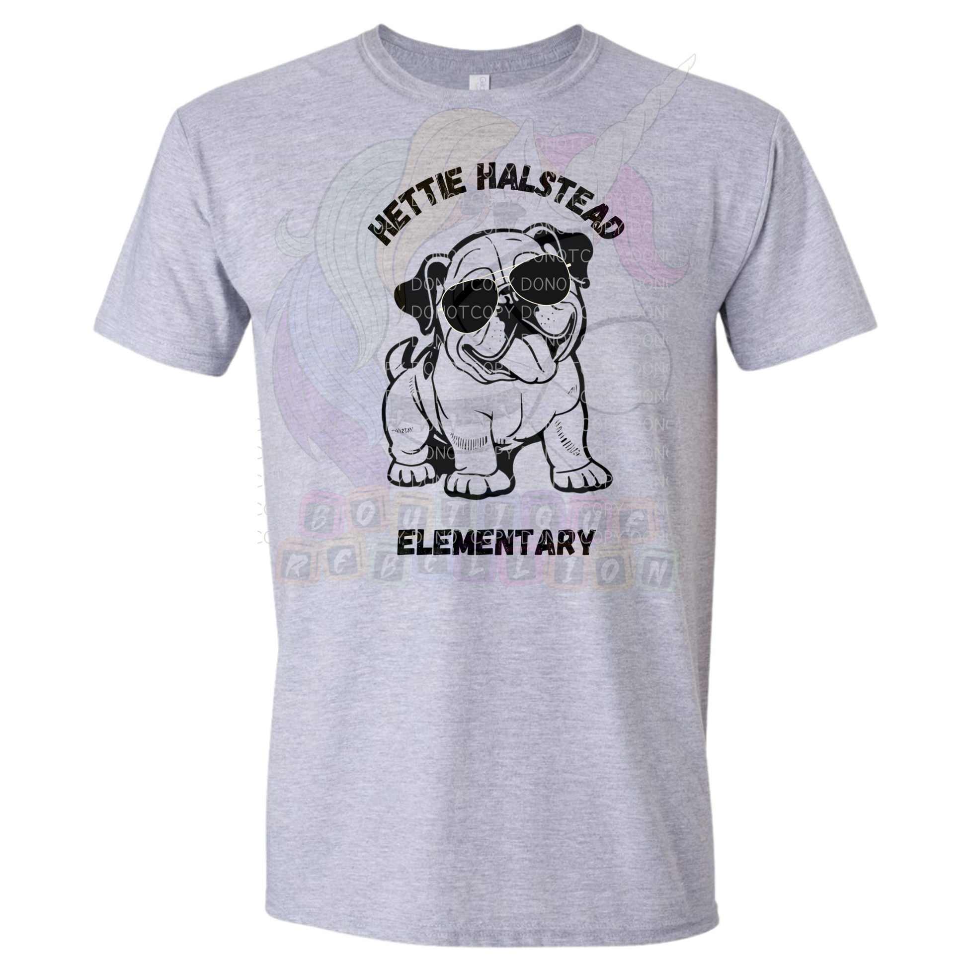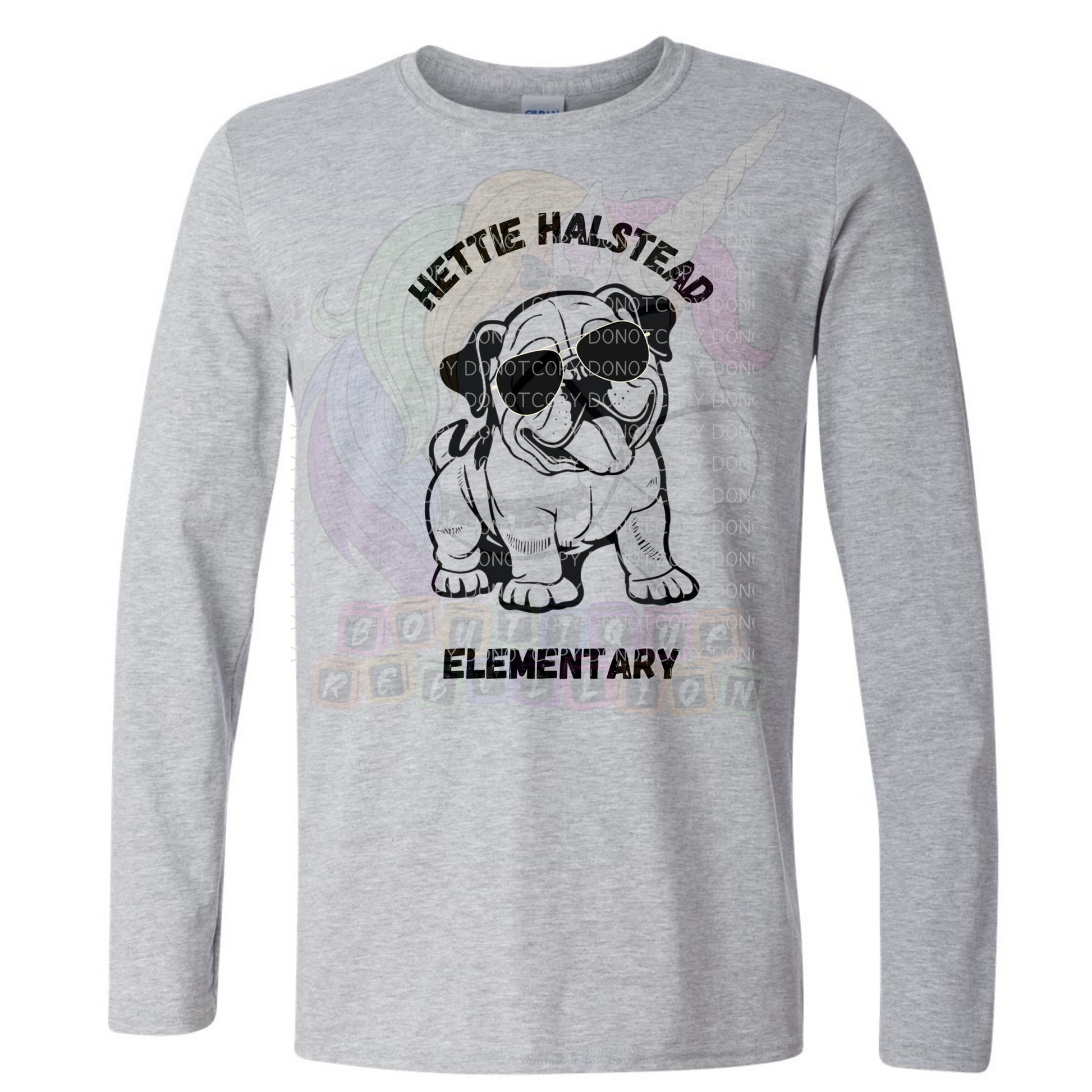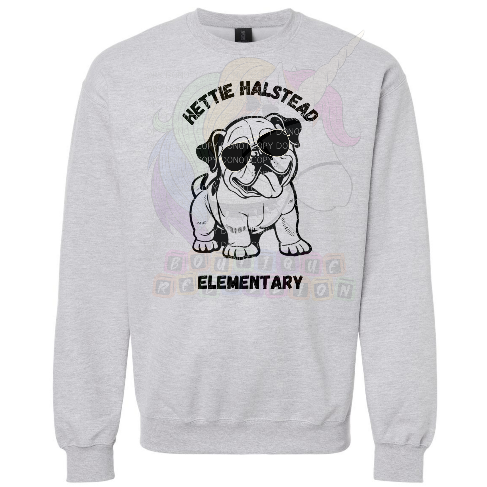 Hettie Halstead Elementary Bulldawgs Dog with Black Glasses Crewneck Sweatshirt, Long or Short Sleeve Adult Tee